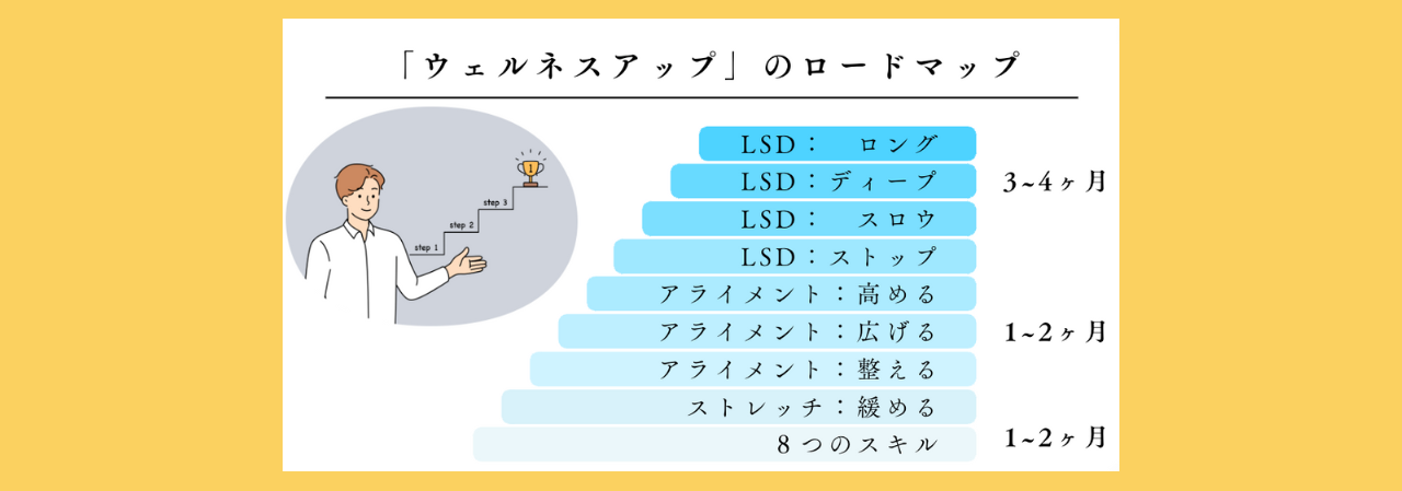 改善ロードマップでは段階やバランスを把握し自分のレベルがどこにいるかがわかります。どのように改善までの道のりが一目瞭然となります。将来不調になった時に、いち早いリカバリーの具体的なノウハウになります。