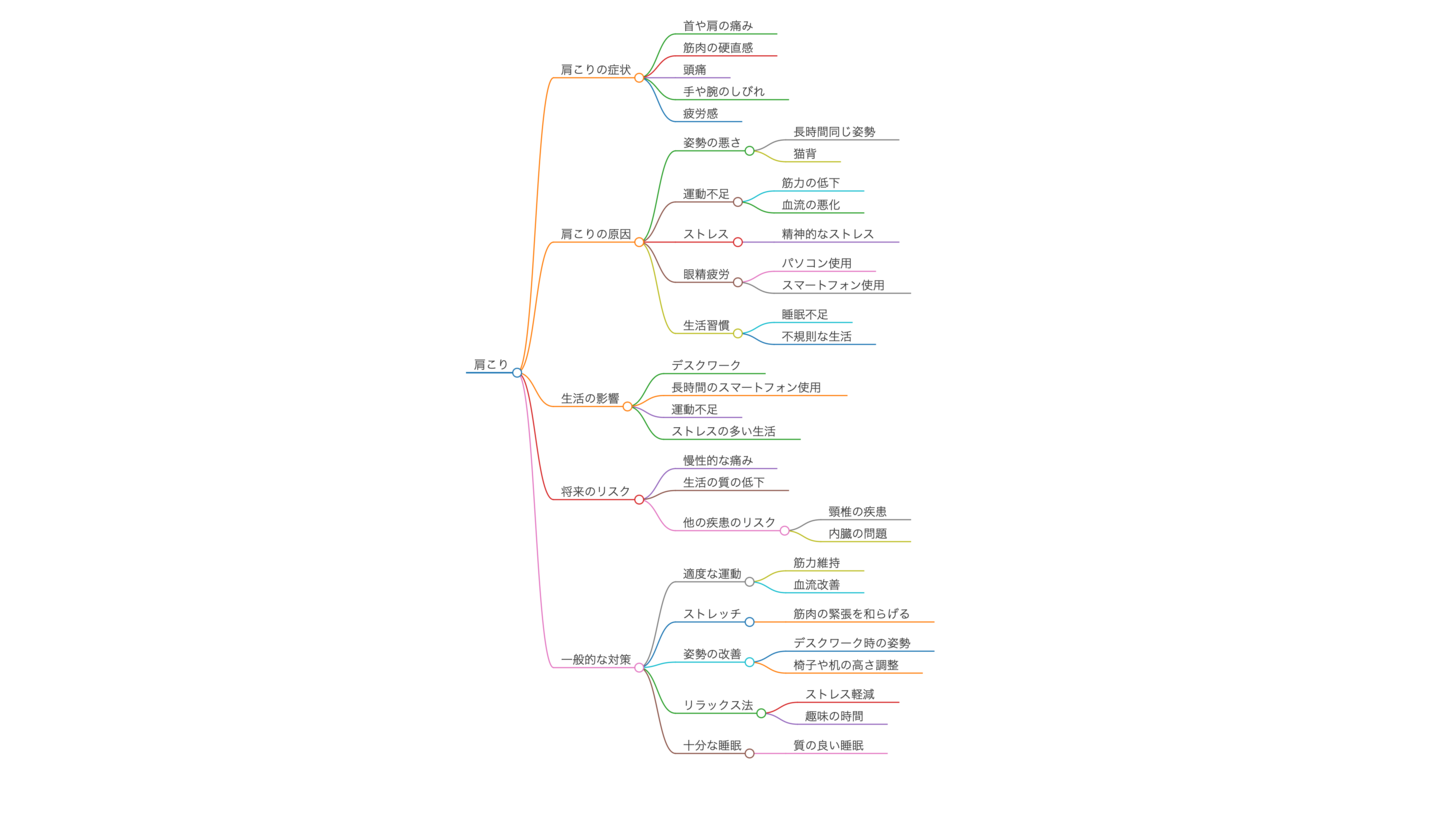 - 他の疾患のリスク: 肩こりは、頸椎の疾患や内臓の問題(例: 高血圧や心臓疾患)と関連することもあります