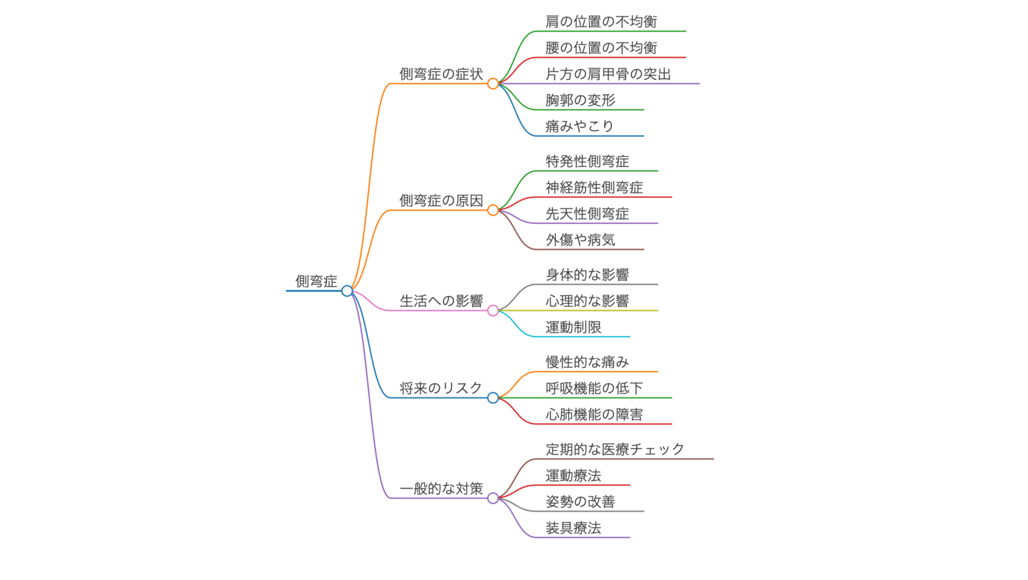 - 心肺機能の障害: 重度の側弯症では心肺機能に影響を与えることがあります。