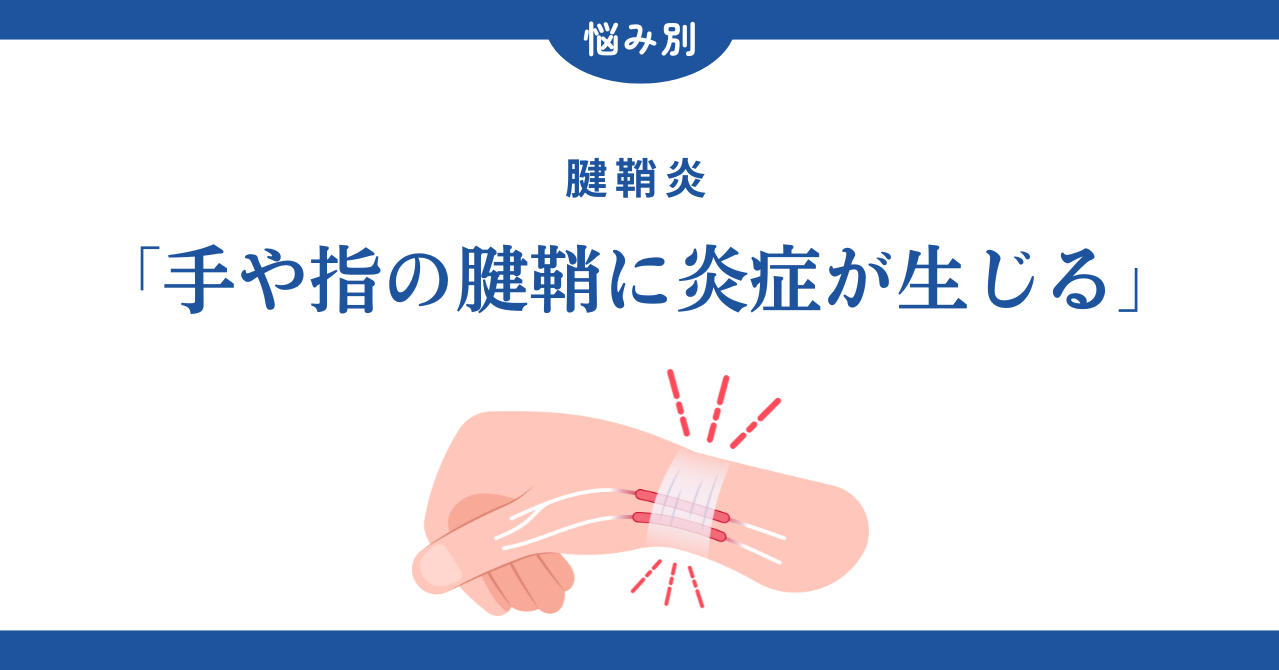 腱鞘炎は、主に手や指の腱とその周囲の腱鞘に炎症が生じる状態です。主な症状には以下が含まれます。