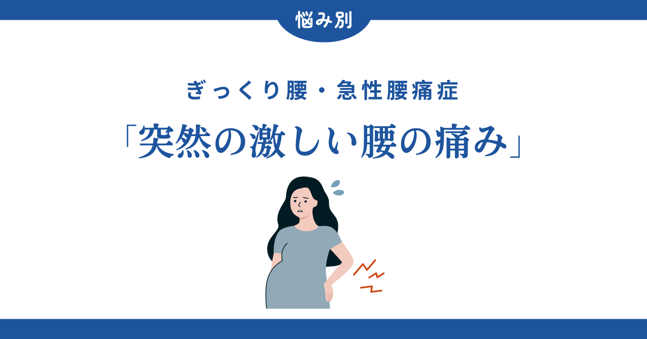 ぎっくり腰、または急性腰痛症は、突然の激しい腰の痛みを特徴とします。主な症状には以下が含まれます。