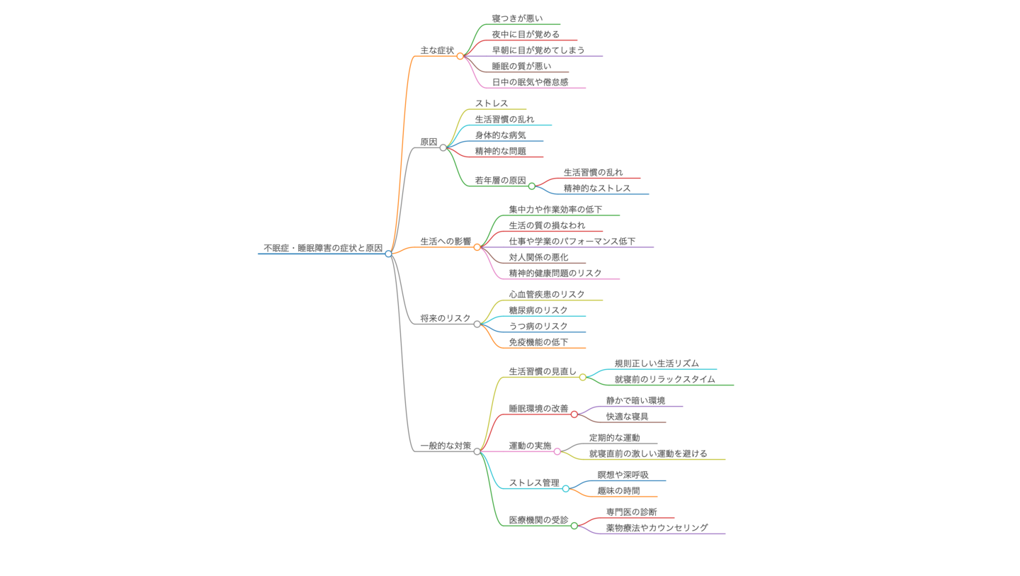 また、睡眠不足は、心血管疾患や糖尿病、うつ病のリスクを高めるだけでなく、免疫機能の低下や認知機能の低下を引き起こす可能性があります。特に、慢性的な不眠は、生活習慣病の発症リスクを高める要因となることが示されています。