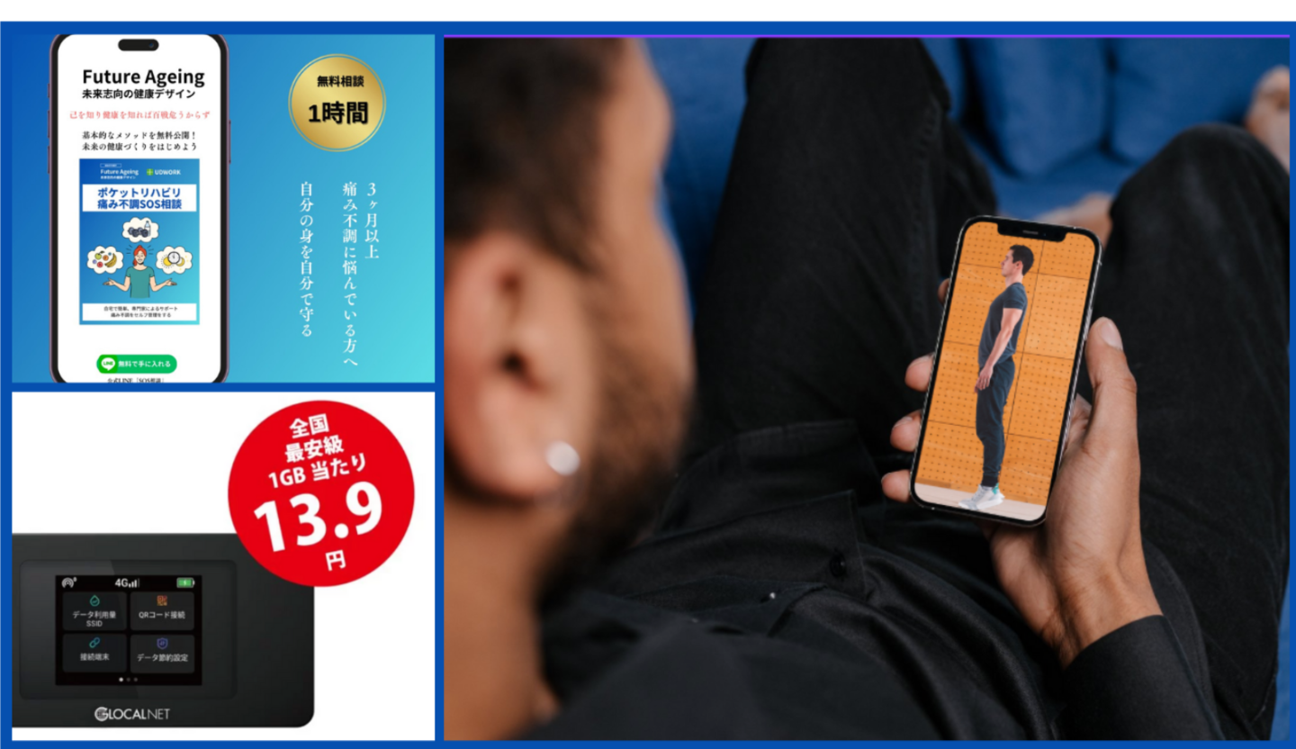 「専門的な健康講座をスマホでいつでもスタート」「格安✖️健康を実現する家計にやさしいスマホ」